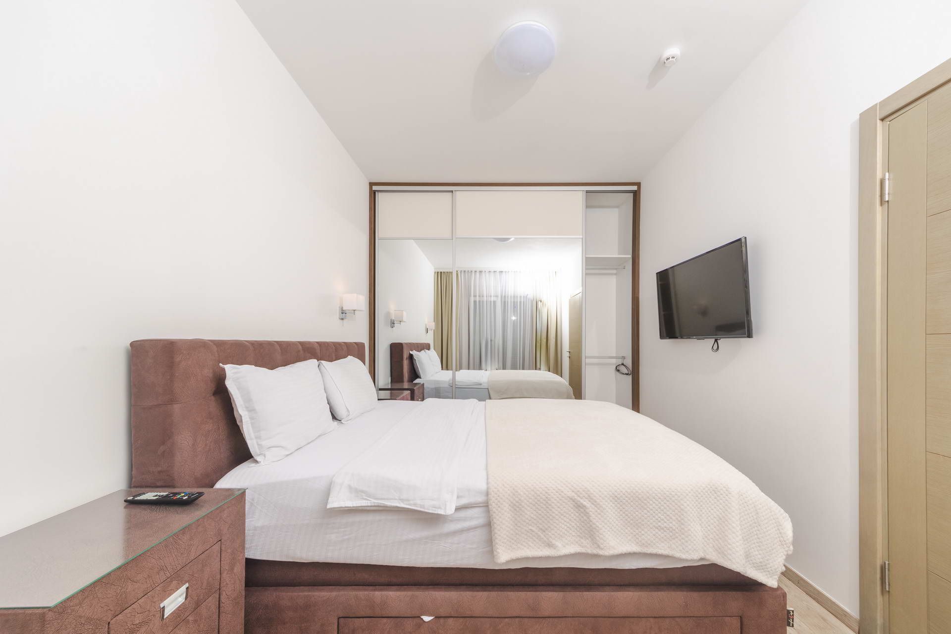 Apartments consist of bedroom equipped with double bed 180/200cm and living room equipped with sofa bed 160/180cm and sitting area.